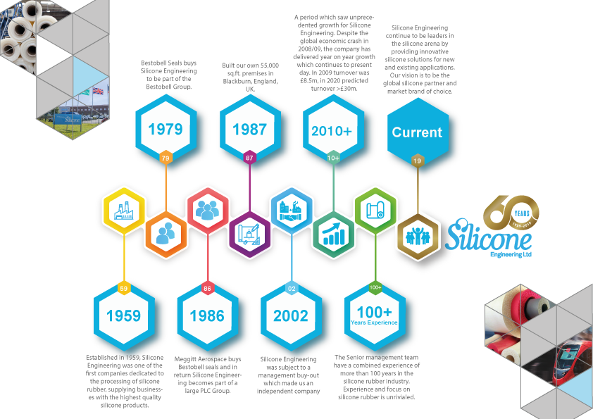 Marketing Manager, Simon Holmes remarked: “The 60th Anniversary is another significant milestone for the Silicone Engineering. We’ve come a long way from when the company first started back in 1959 but our focus on silicone rubber innovation stays the same. The next decade looks very exciting and with continued investment being made in equipment, people and research, we’re looking forward to the next chapter in Silicone Engineering’s history.”